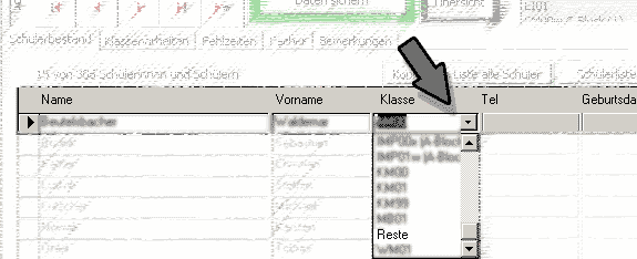 Klicken Sie dann im Klassenformular in der Schülertabelle auf das Drop-Down-Feld