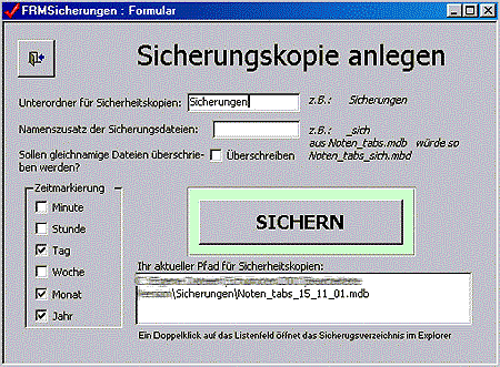 Zeitmarkierung an den Sicherungsdatennamen knüpfen (-> siehe folgender Punkt),